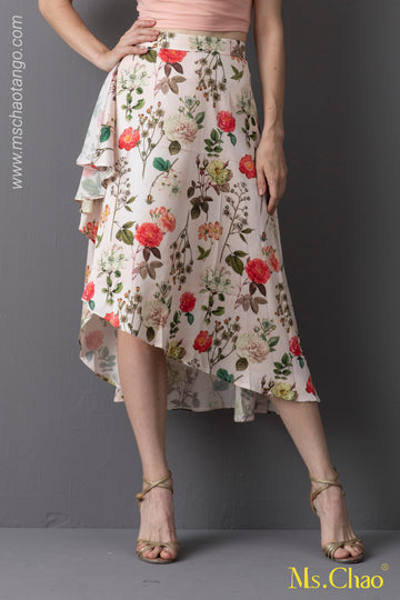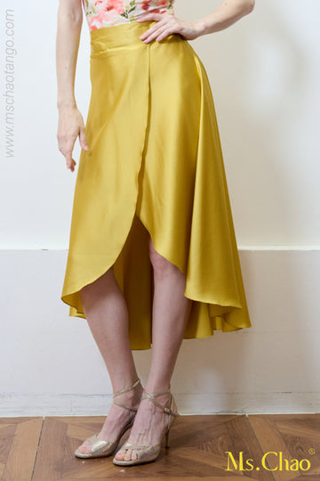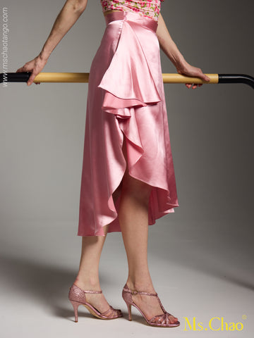 Wraparound flare skirt with ruffles Matte poly satin chiffon , 96% polyester 4% spandex Make...