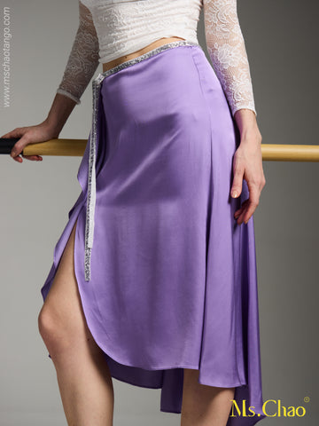 Flare skirt with sequins stripe and side zipper + back slit Poly satin chiffton...