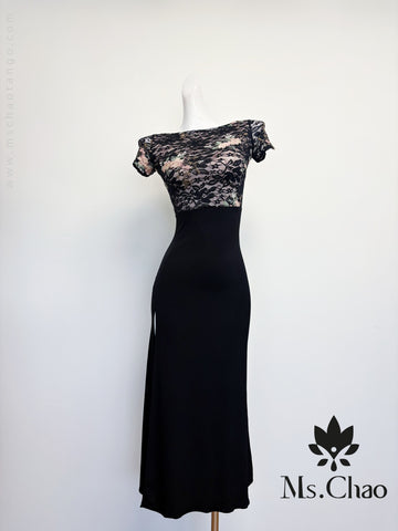 DESCRIPTION Short-sleeved lace netted cross-over backless fishtail dress. Soft bra pads. Stretch lace + matte...