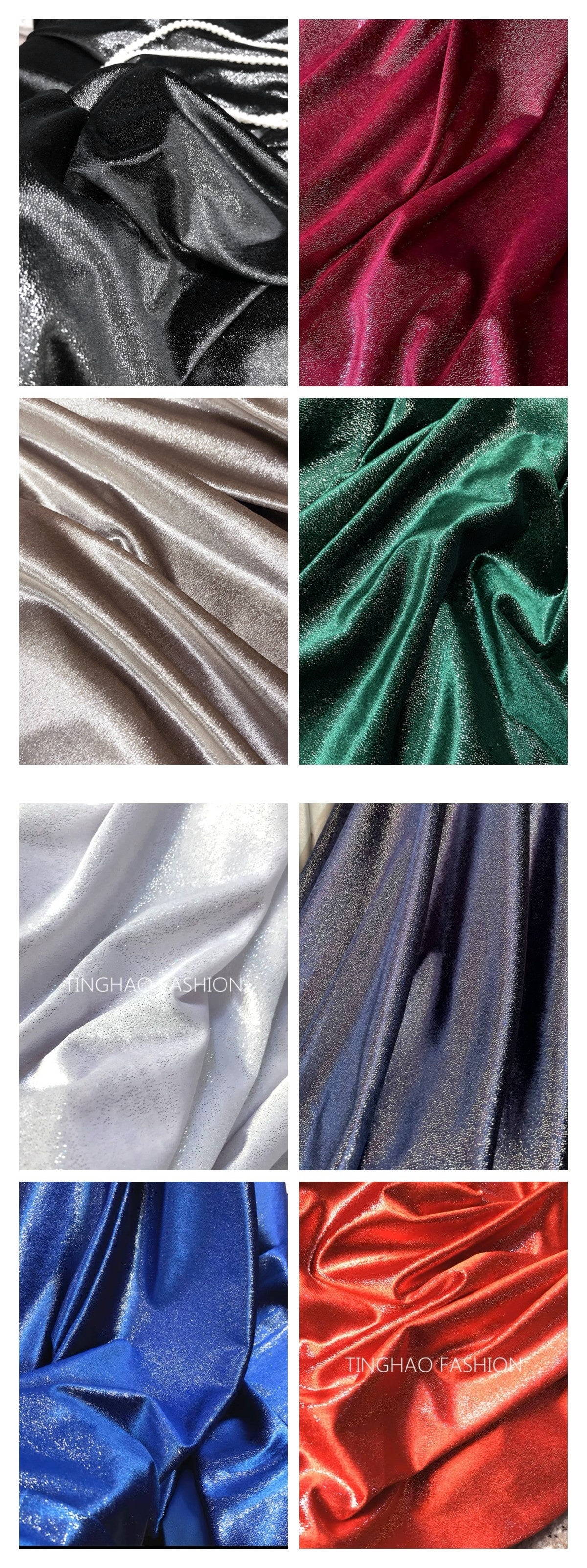 stretch velvet with silver coating , 96% polyester 4% spandex.