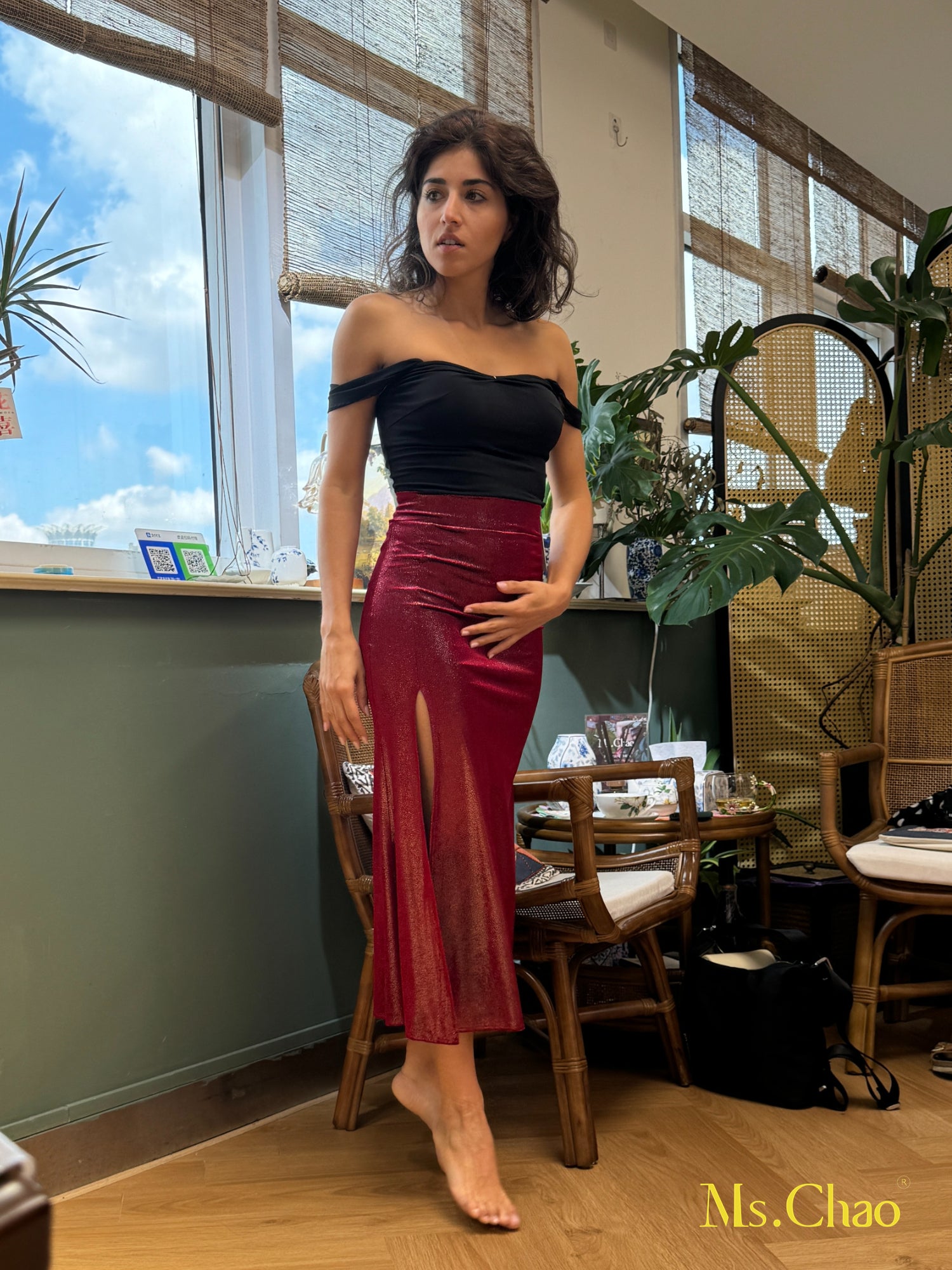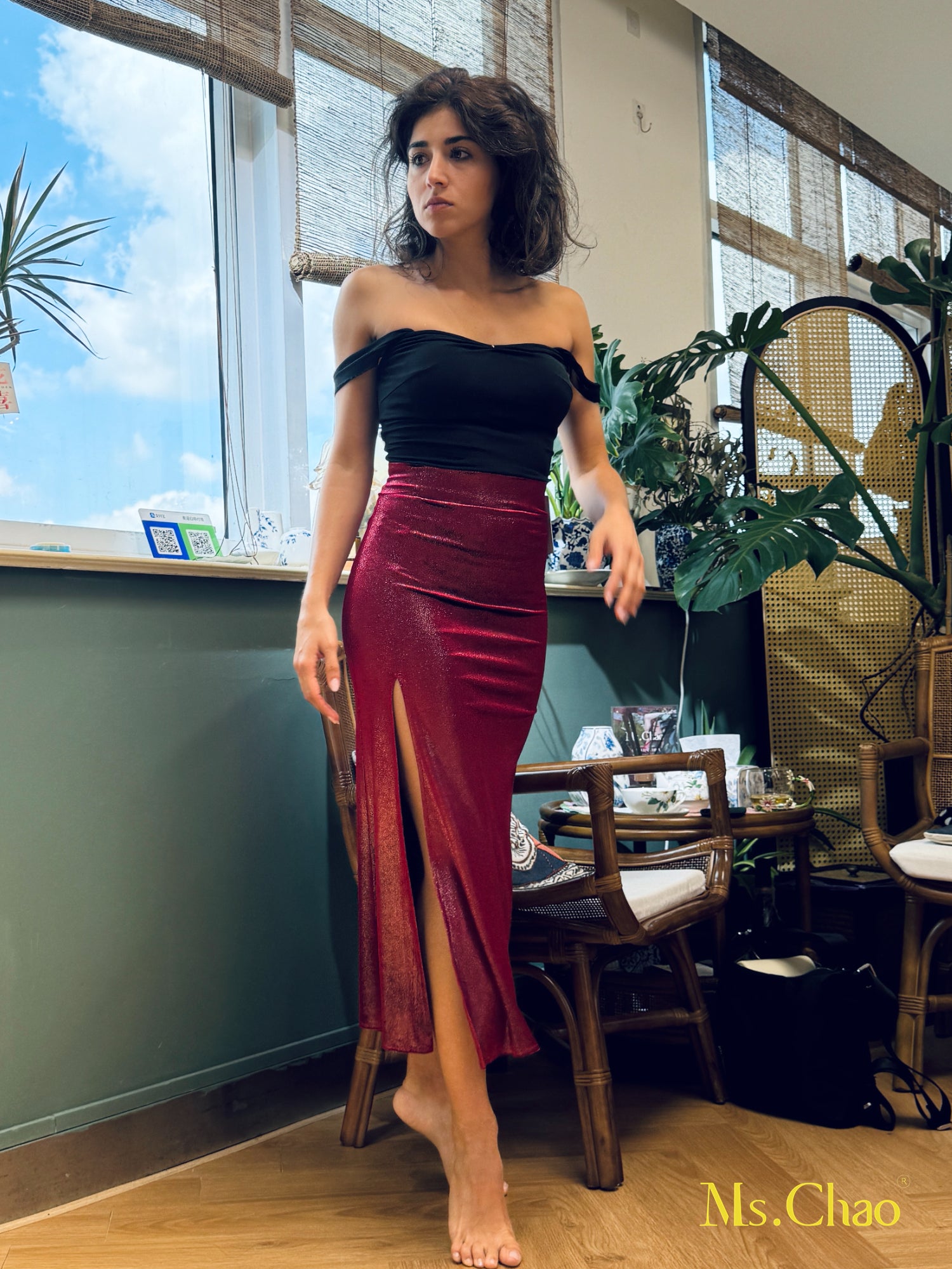 Half-custom size: For non-standard proportions (e.g. shorter/taller height, combination of different top/bottom sizes). Additional $25 applies for extra pattern adjustment. Please select “Half-custom” from the size menu and provide bust, waist, hip, and height in the order note. We will contact you within 24h to confirm.