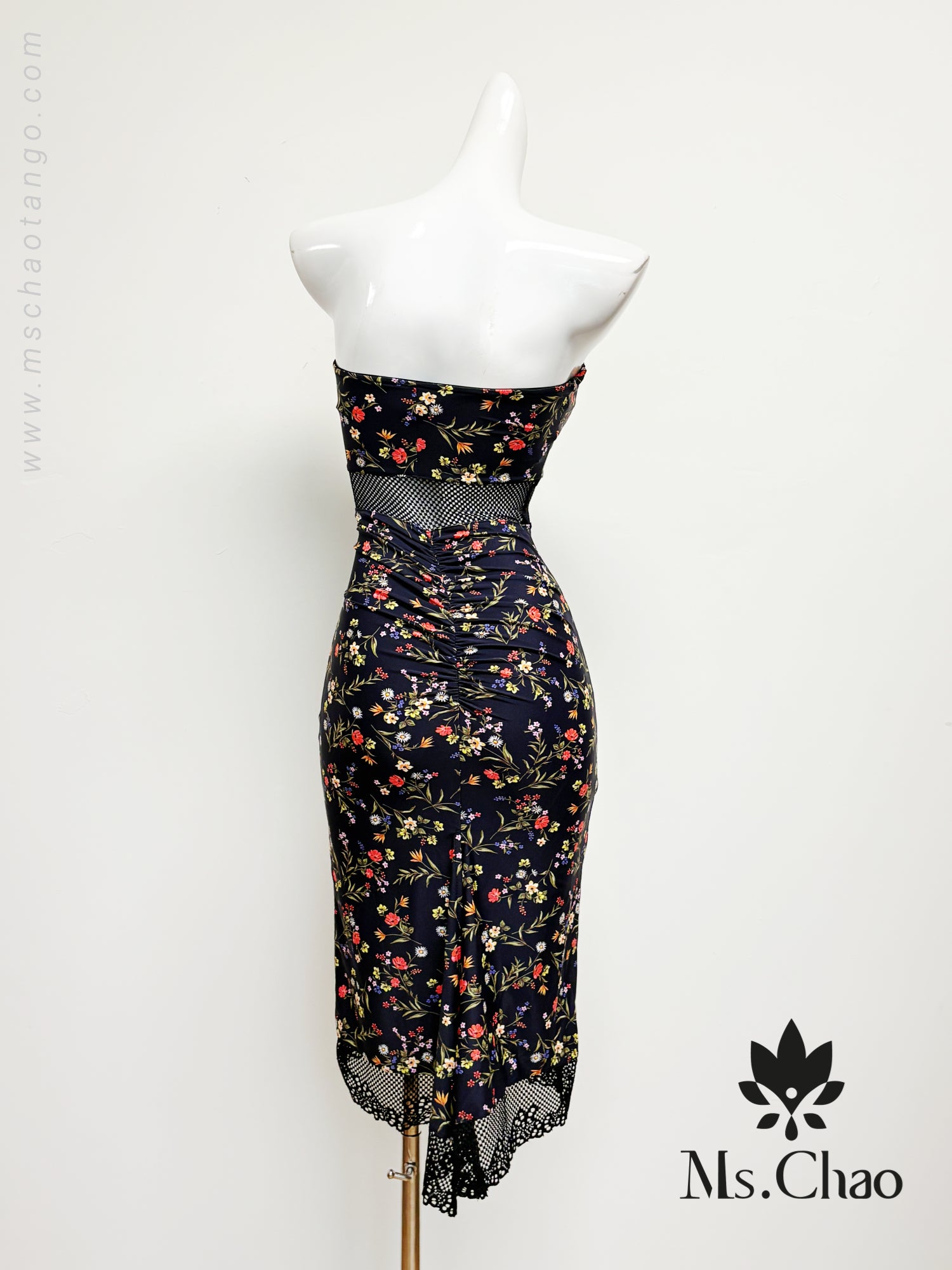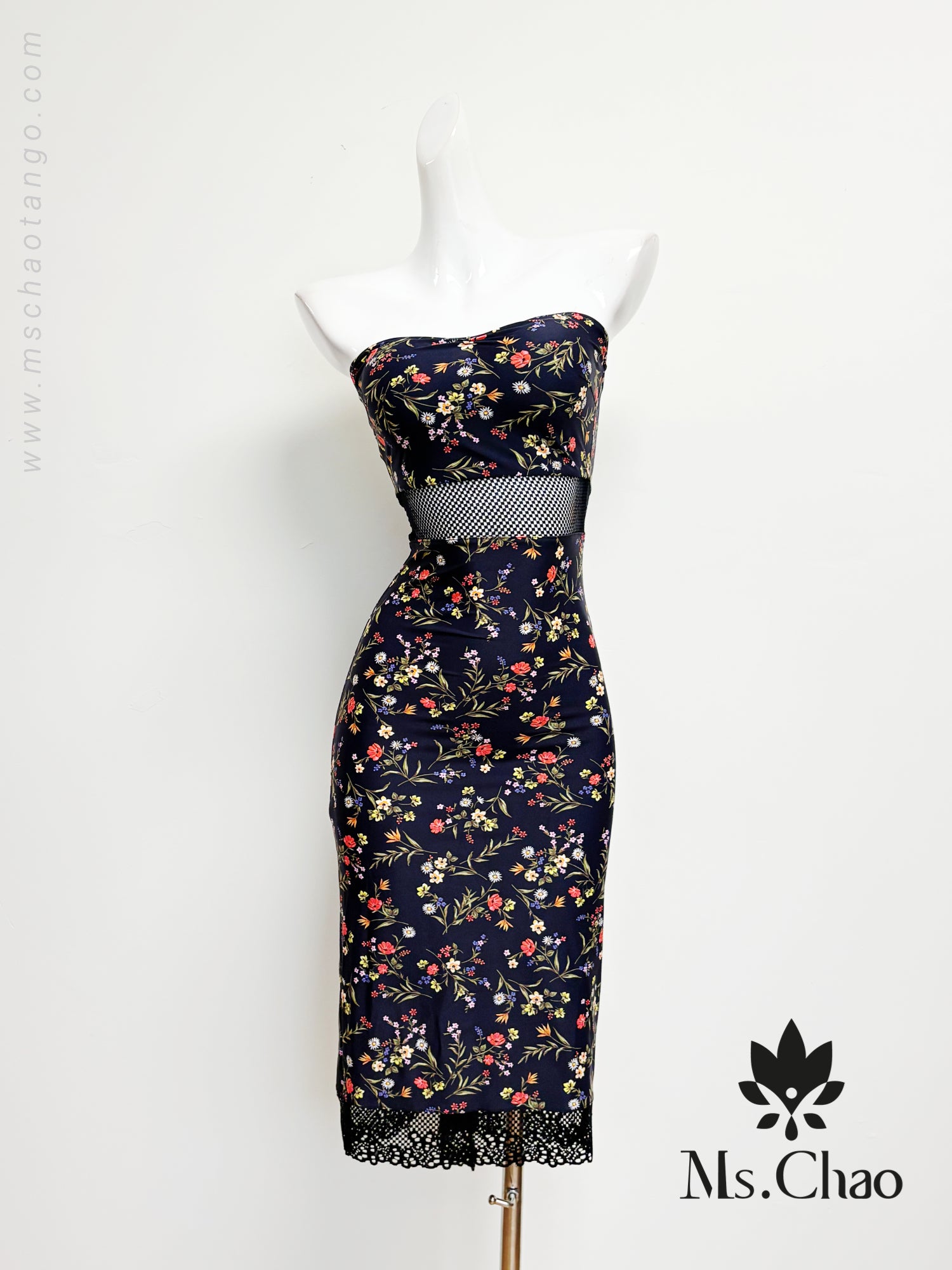 • Sexy tube dress joined with black lace at wasit and hem.