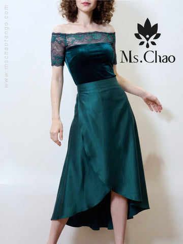 Classical off-shoulder and short sleeves top in stretch velvet and lace. Soft bra pads Make...